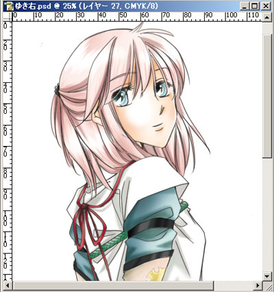 上の1枚目の画像は肌にざっと基本と同じ色で、ブラシ乗算で新規レイヤー(肌にグループ化してます)乗算で影となりそうな部分をざかざかっと色塗り。